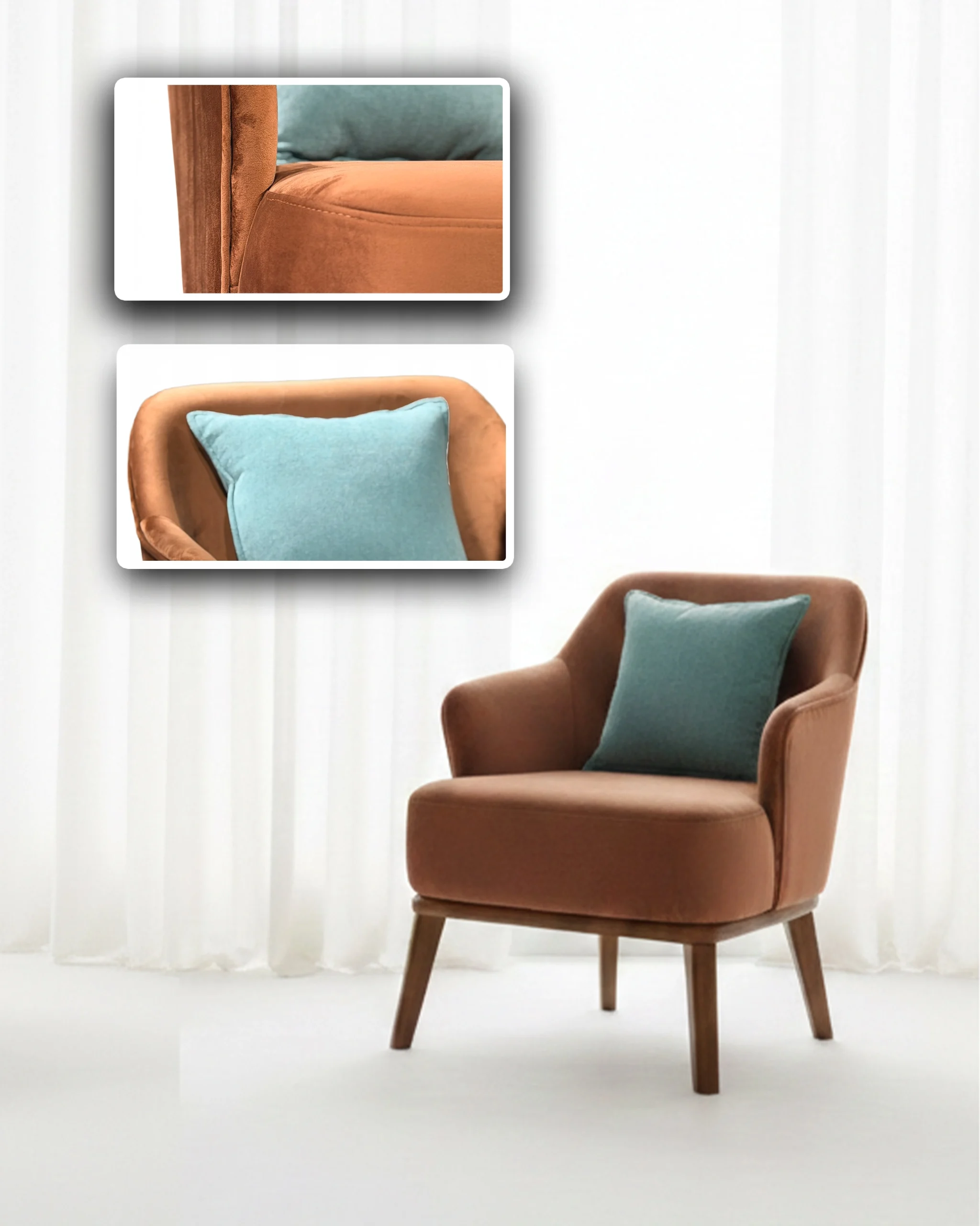 Premium Velvet Single Chair with Heavy Wooden Fram